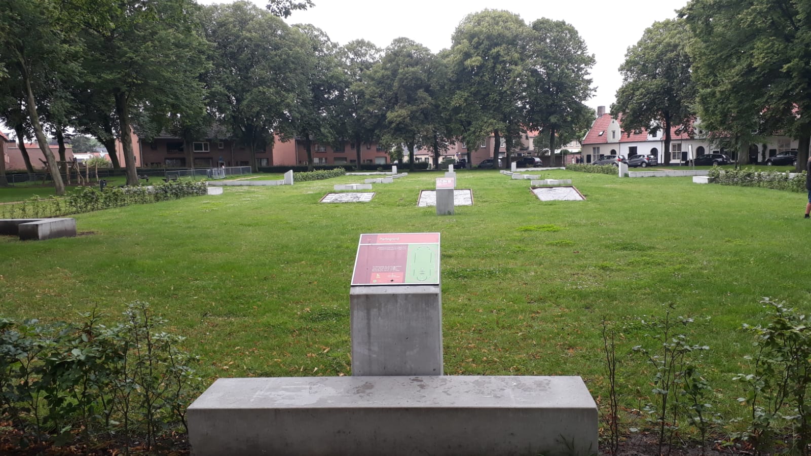 Is dat een plaats waar vroeger een kerk stond? Zijn dat 3 grafstenen op het midden van de foto?