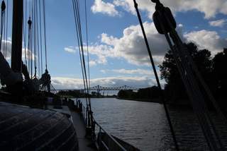 Ik denk, jullie waren met het bootje op de NOK op weg en onder de brug in Rendsburg gevaren.